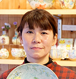 コメント:陶磁器絵付けで青い色、染付という技法が得意です。最近は多彩な色の上絵付の作品も制作しています。