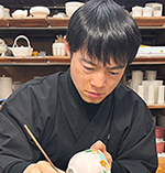 平成15年京焼清水焼伝統工芸士認定。現在山城多賀工房にて素地から下絵、白化粧、色絵付、金襴手、花鳥赤絵製作、ガラス素地にも絵付け製作。