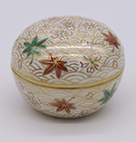 コメント:清水の澤村陶哉工房で30年絵付けに従事、その後独立。乾山・仁清地に、本金をあしらった華やかな季節感のある絵が特徴。