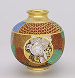 コメント: 伝統文様を魅力あるデザインを基に、新たな組み合わせで、鮮やか、細密な金彩上絵付けを施します。輝く、豪華絢爛な清水焼を表現して、追求します。